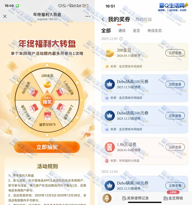 电信用户可以参与一下这个活动,只有一次抽奖机会