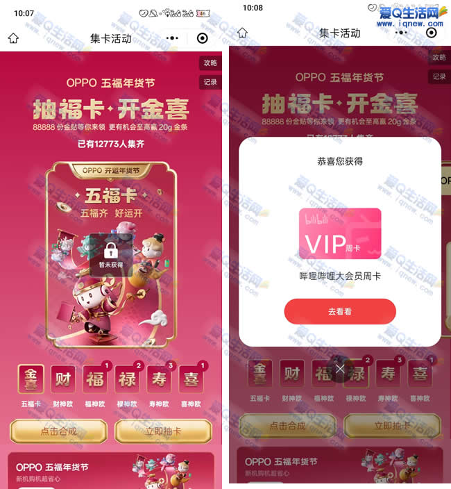 微信打开下方小程序 完成任务集卡合成抽奖 每张卡片翻转一下可以刮奖