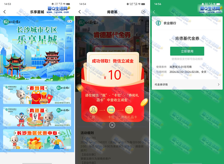 湖南农行6分购肯德基+麦当劳10元立减金 亲测20元 ...