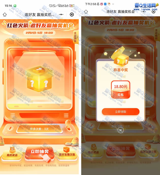 这个活动是有邀请的哦,总共有3次抽奖机会