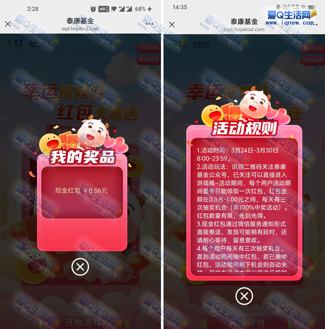 泰康基金幸运抓娃娃 亲测0.56元现金红包 ...