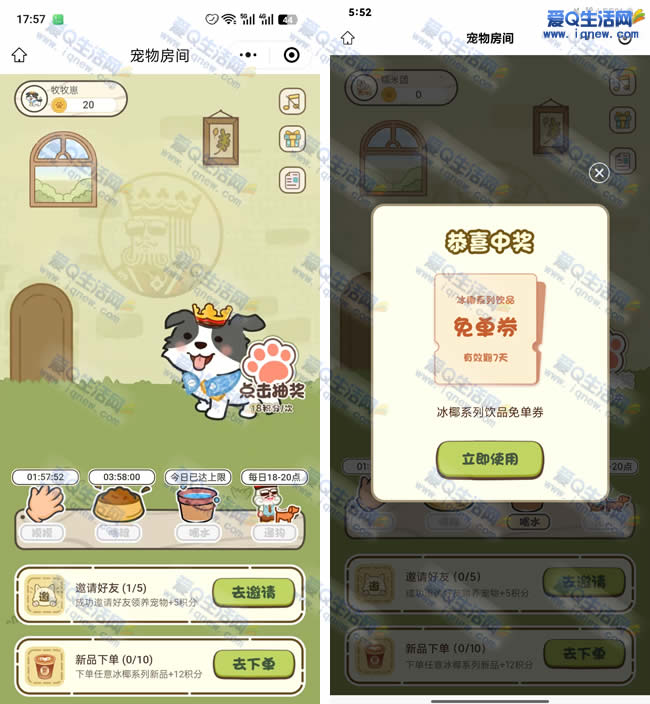 幸运咖养宠物抽免单 亲测冰椰系列免单券 ...