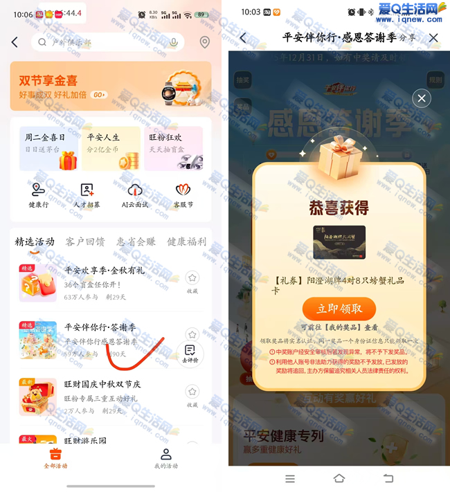 平安伴你行国庆抽实物 反馈中阳澄湖蟹卡 ...