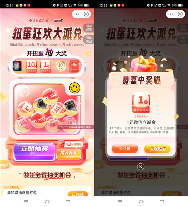 中信银行扭蛋狂欢抽1-100元微信立减金、京东卡 亲测中3 ...