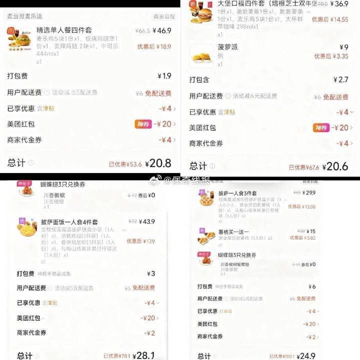 3️⃣麦当劳等津贴且免配送费