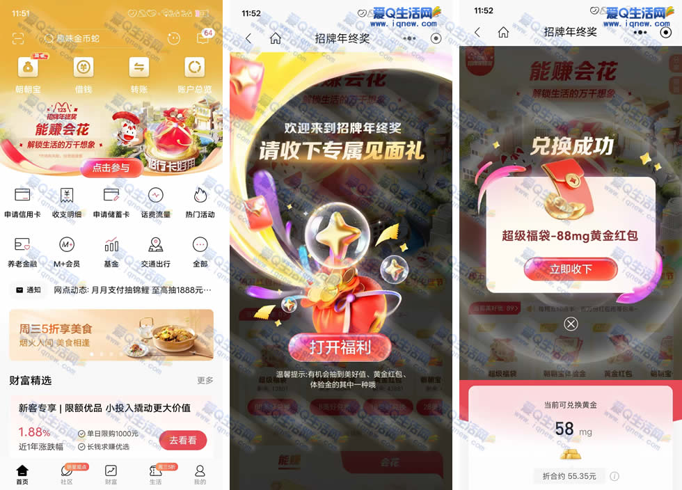 招行能赚会花美好值抽奖 反馈88mg黄金红包 ...