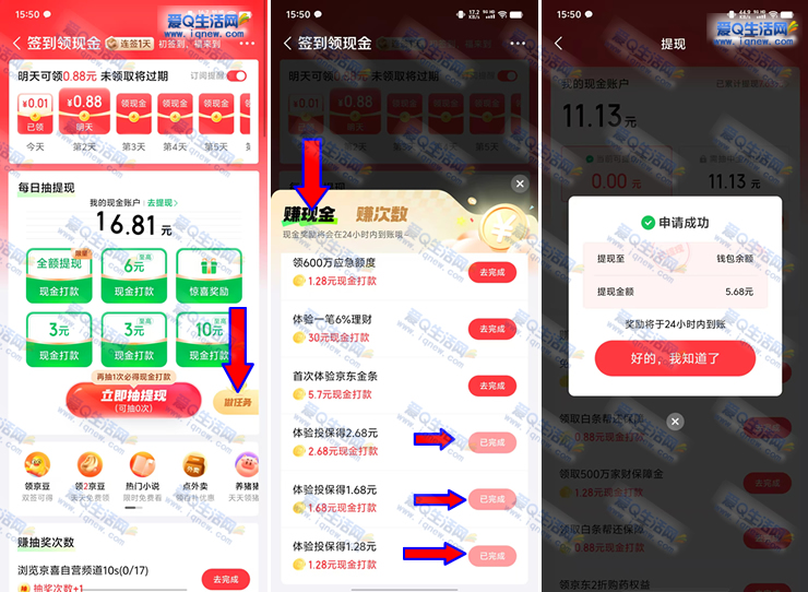 完成可领2.68+1.28+1.68元现金,亲测5.68元现金秒到余额