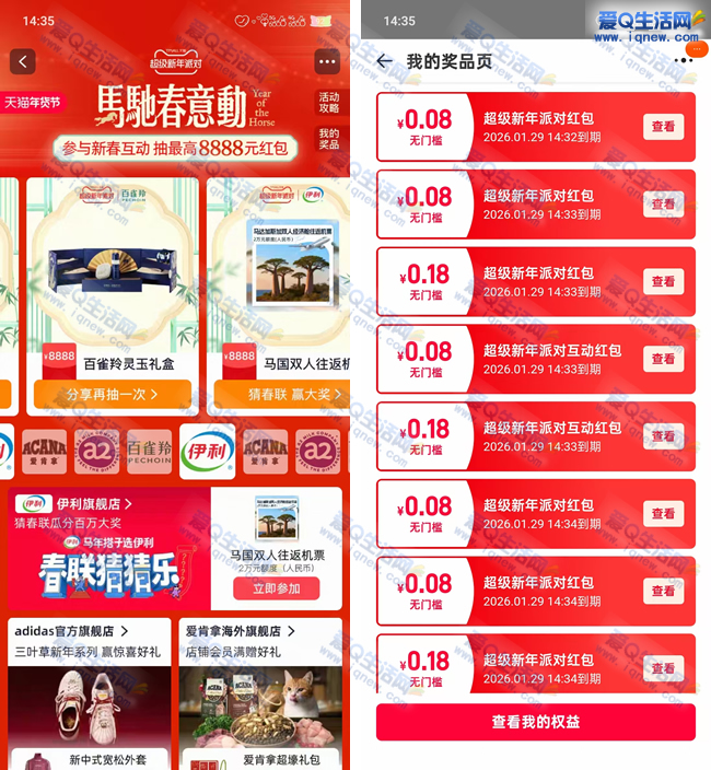 淘宝APP搜【超级新年派对】点进去参与抽奖即可