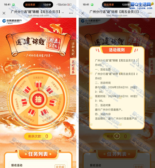 广州建行遇建锦鲤 抽2-100元微信立减金