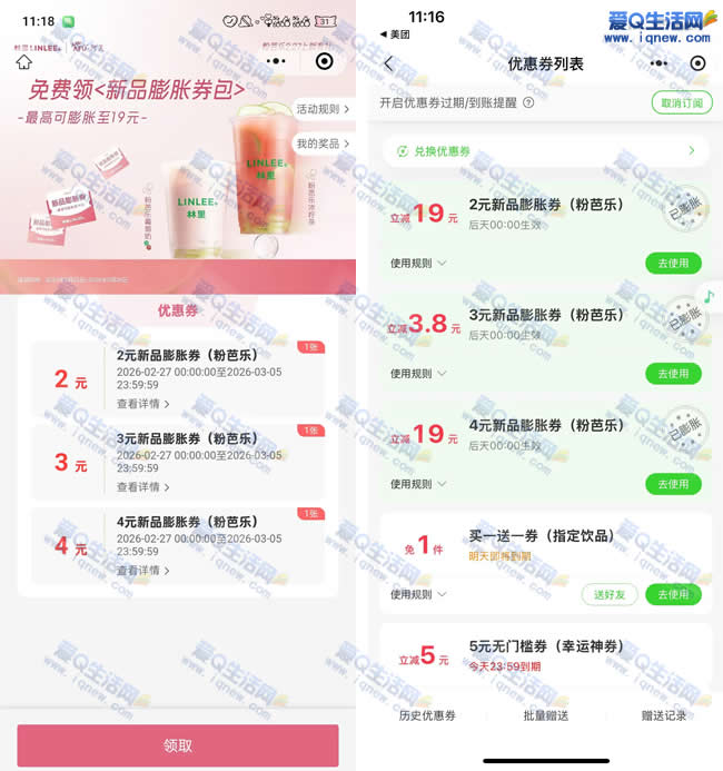 林里膨胀最高19元无门槛 可最低0元喝奶茶 ...