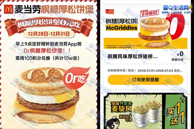 麦当劳抢10万份枫糖厚松饼堡 每天2.5万份