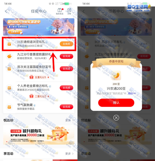 工行app-任务中心-兴农通频道浏览有礼,抽奖