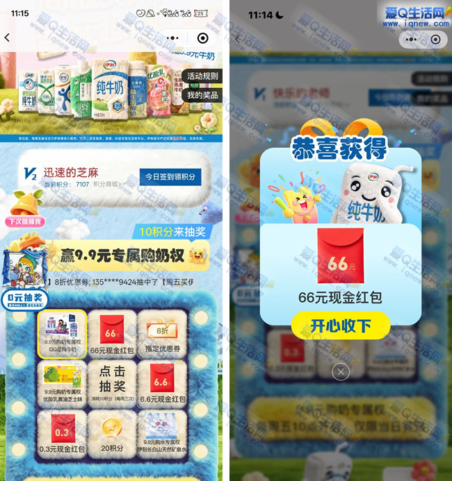 总共可以抽奖3次,抽到现金或者实物记得领取哦