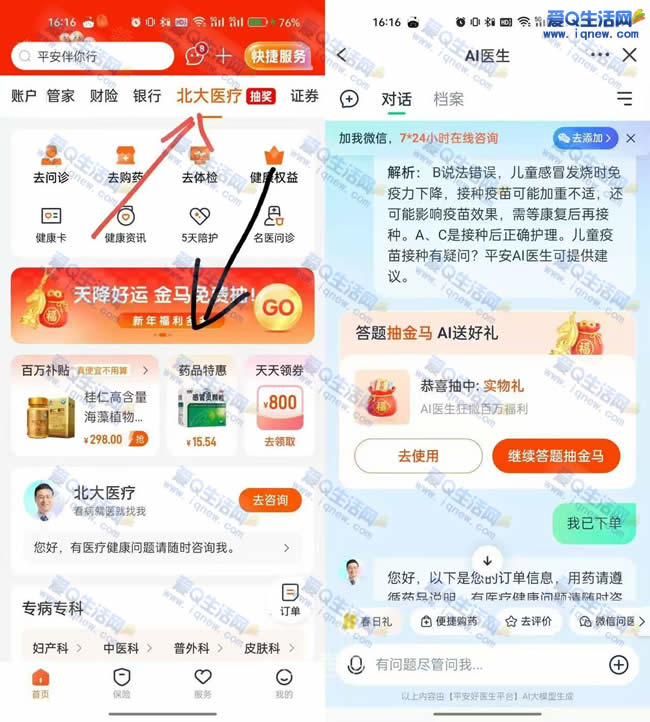 平安金管家APP-首页-顶部【北大医疗】滚动横幅【天降好运 金马免费抽】答题抽奖试试