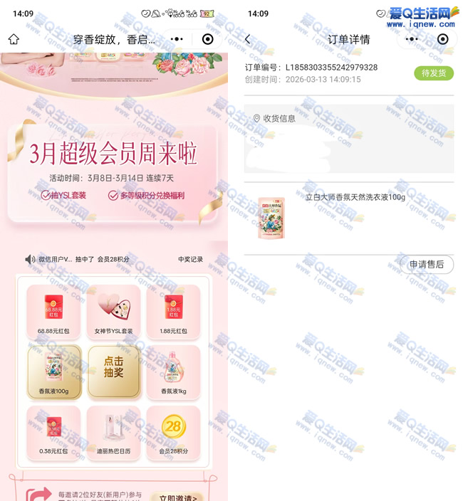 亲测中立白洗衣液一袋 立白三周年抽奖