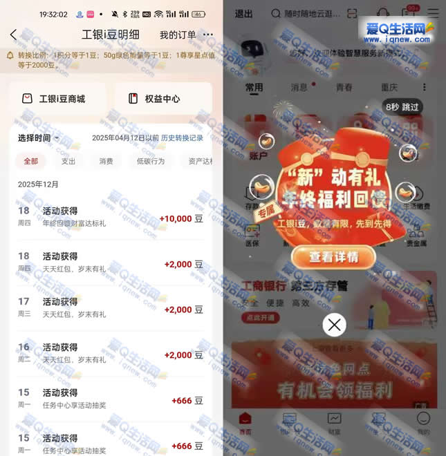 工行薪动有礼年终福利回馈 反馈10000工银i豆 ...