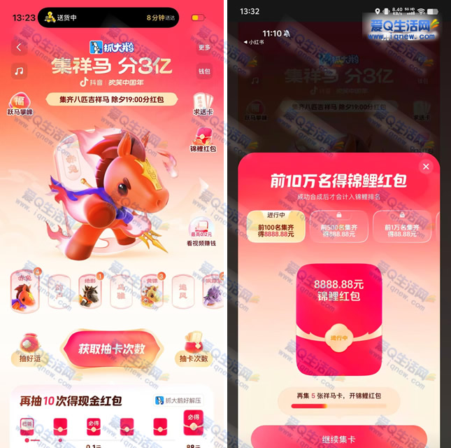 抖音集祥马分3亿 前1万名集卡领88.88-8888.88元 ...