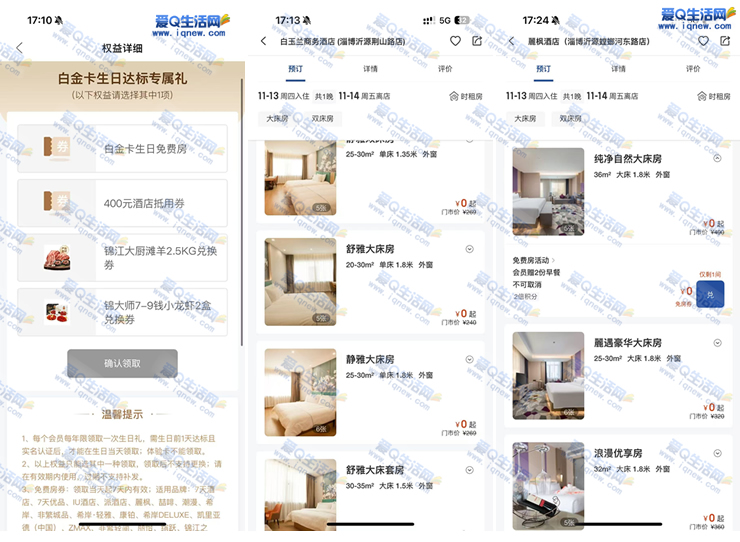 锦江荟白金卡生日权益4选1 反馈免费住房 ...