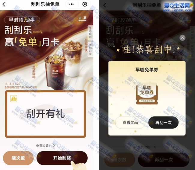 可以免费领取抽奖机会,有机会抽到古茗咖啡免单券