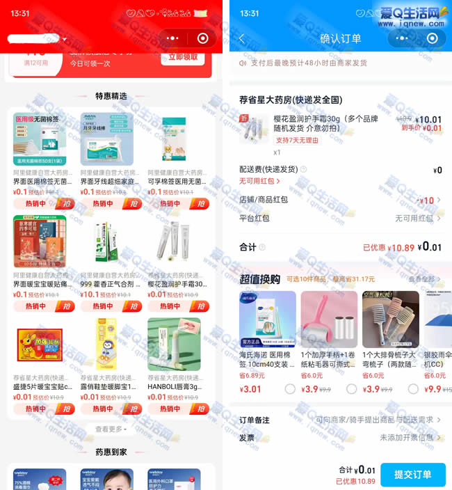 饿了么直接0.01元撸实物 多号可多撸