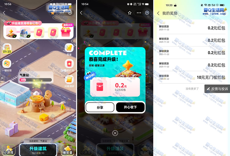 简单升级建筑可解锁对应红包,最多领取5个红包
