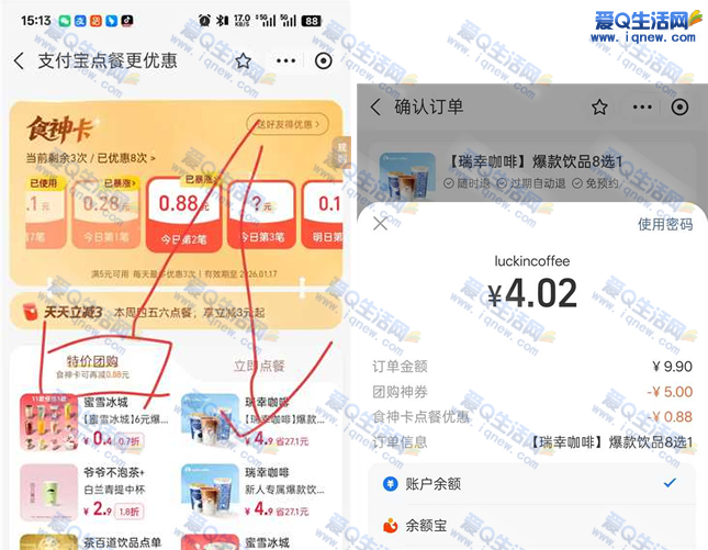 反馈4元喝瑞幸咖啡 支付宝食神卡特价团购 ...