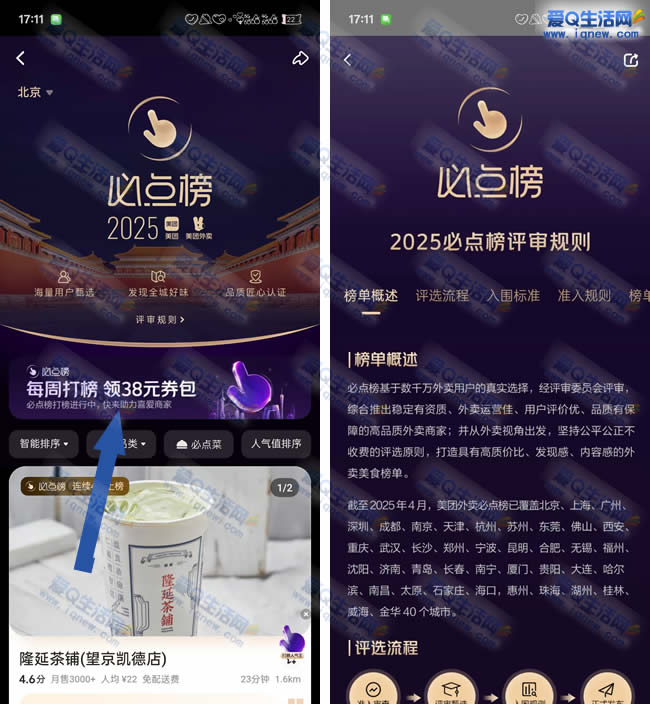 美团APP首页顶部搜【必点榜】如果没有入口就首页切换位置到【北京】再搜索-横幅【每周打榜 领38亓券包】点进去 下拉抽奖试试