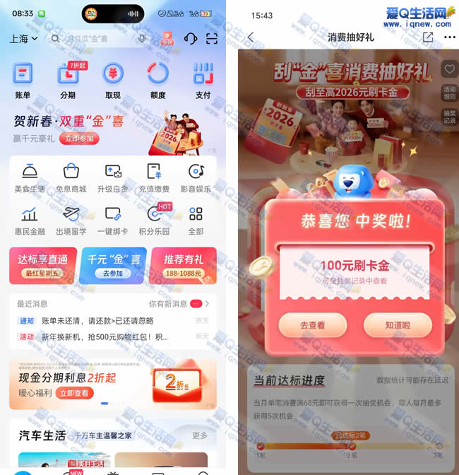 消费达标就可以参与抽奖,最高可以抽到2026元刷卡金