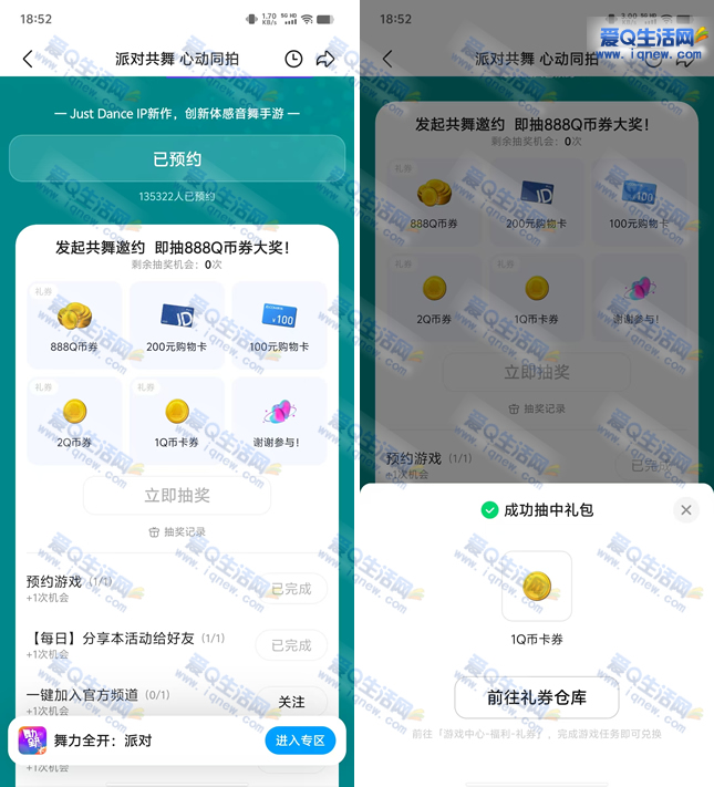 亲测1Q币不秒到 手Q预约舞力全开抽奖