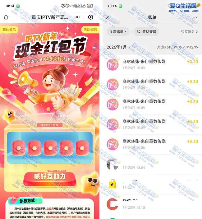 总共可以邀请4次好友助力,总共5次抽奖机会,抽到现金红包是秒到微信支付的哦