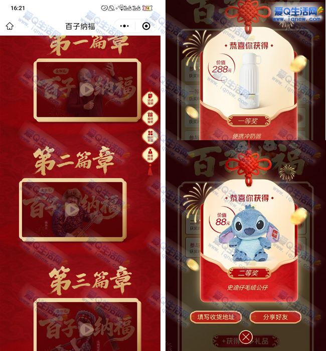 微信打开下方地址 完成观看任务获得福气值 100福气值抽奖1次