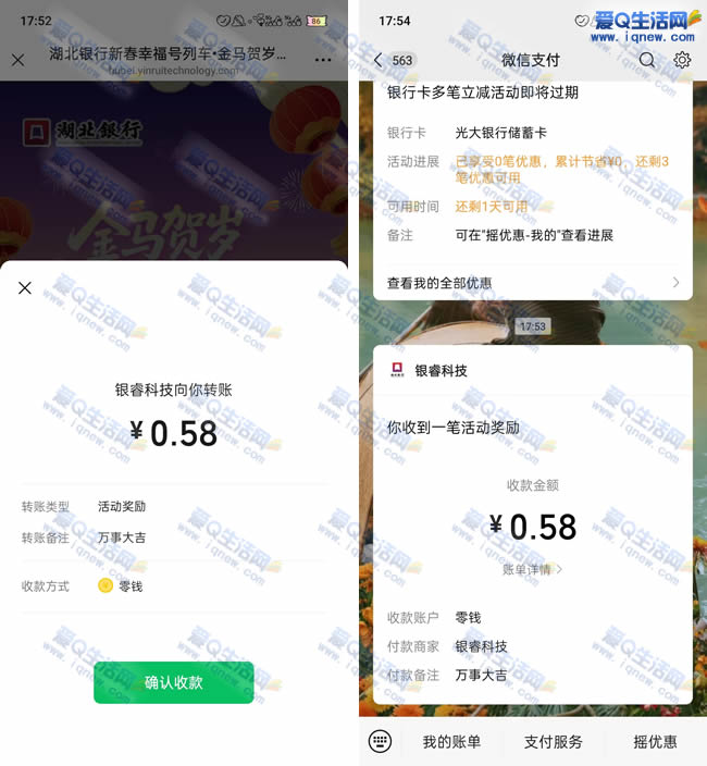 亲测0.58元秒到微信 关注公众号抽奖即可 ...