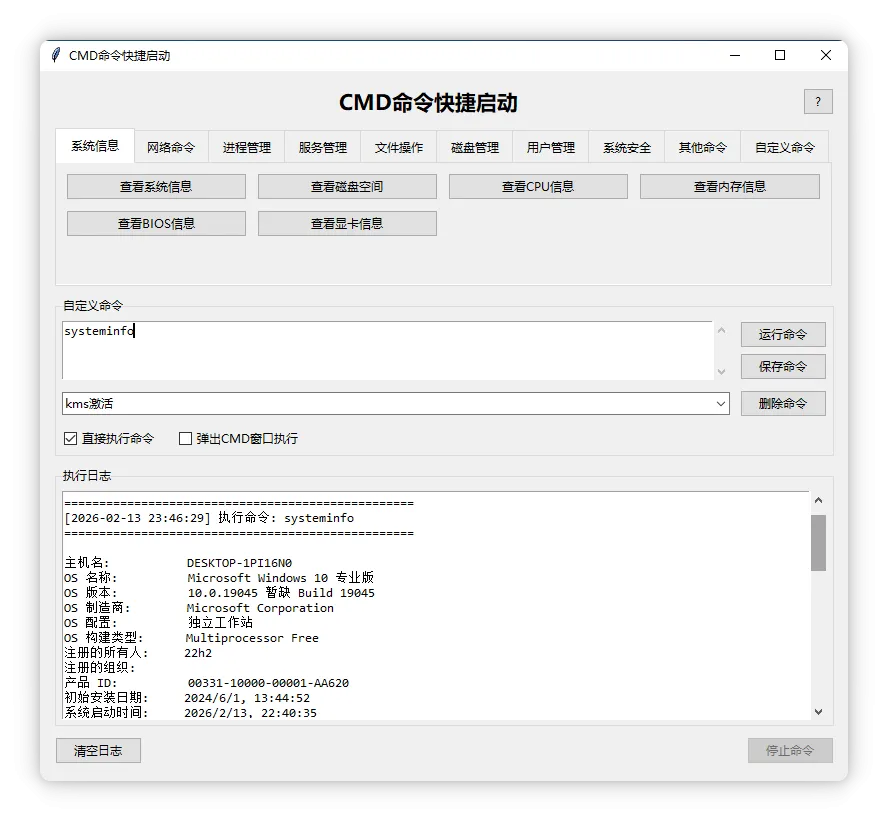 程序里预设了几十个常见的CMD命令,还可以自己新增保存自定义的命令,使用起来更方便快捷