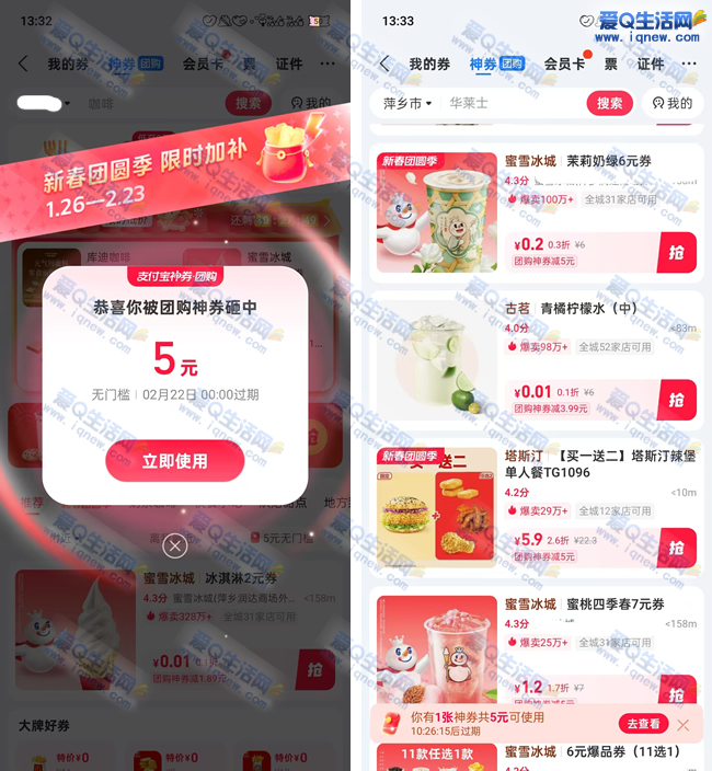 0.01元喝蜜雪冰城/古茗 支付宝领5元券