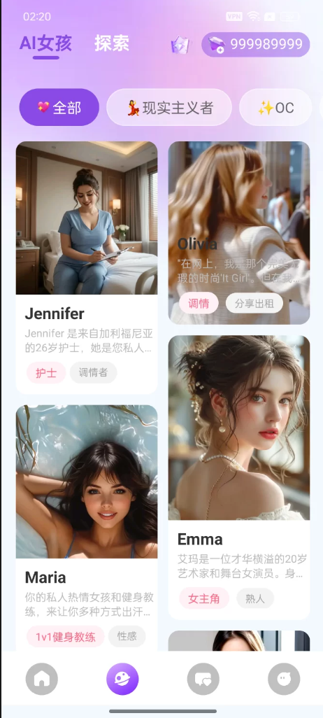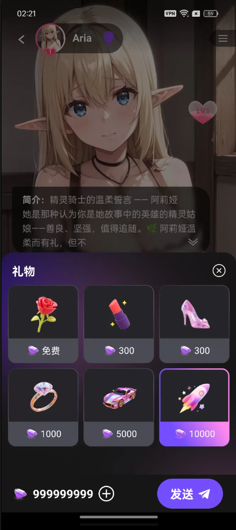 这个ai聊天软件已破解无限砖石,里面的功能随便用,礼物随便送,随便解锁图片(需要开加速器使用)