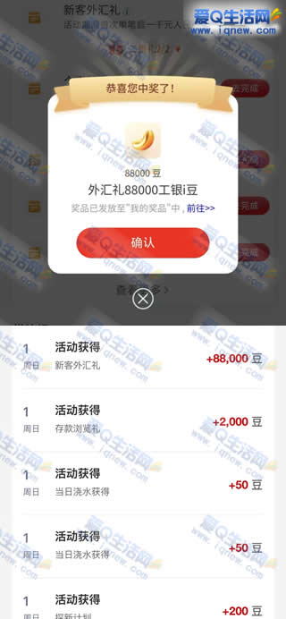 工行新客外汇礼抽奖 反馈8800个工银i豆