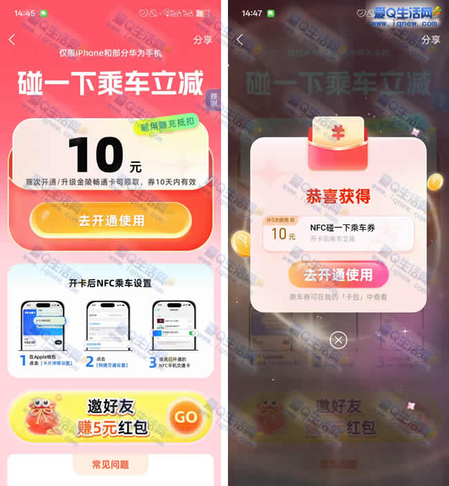 苹果/华为手机用户可以领取之后开通nfc功能就可以支付了还是不错的