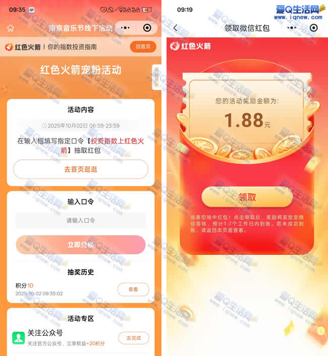 红色火箭宠粉抽红包 反馈1.88元秒到