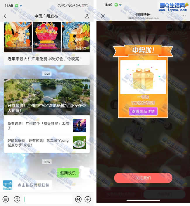 微信搜【中国广州发布】公众号-回复【假期快乐】点进去抽红包 3次机会