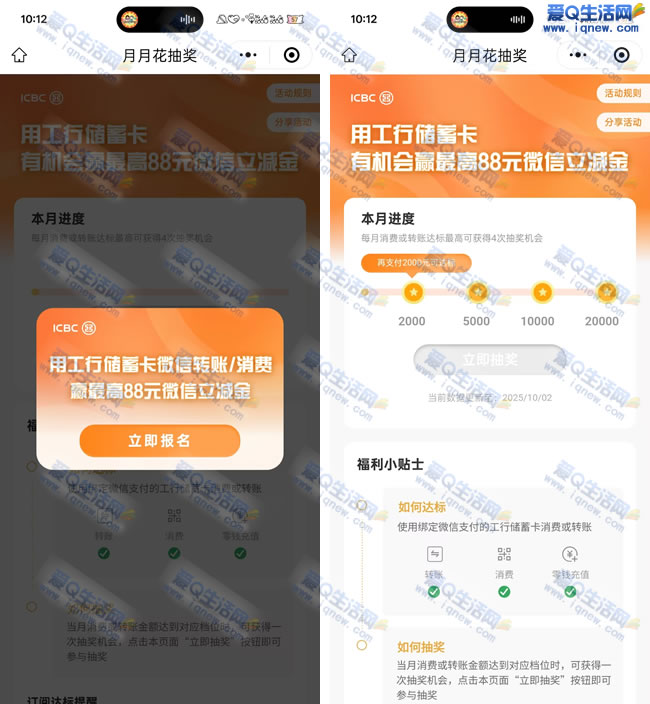 工行借记卡月月花抽奖 赢最高88元微信立减金 ...