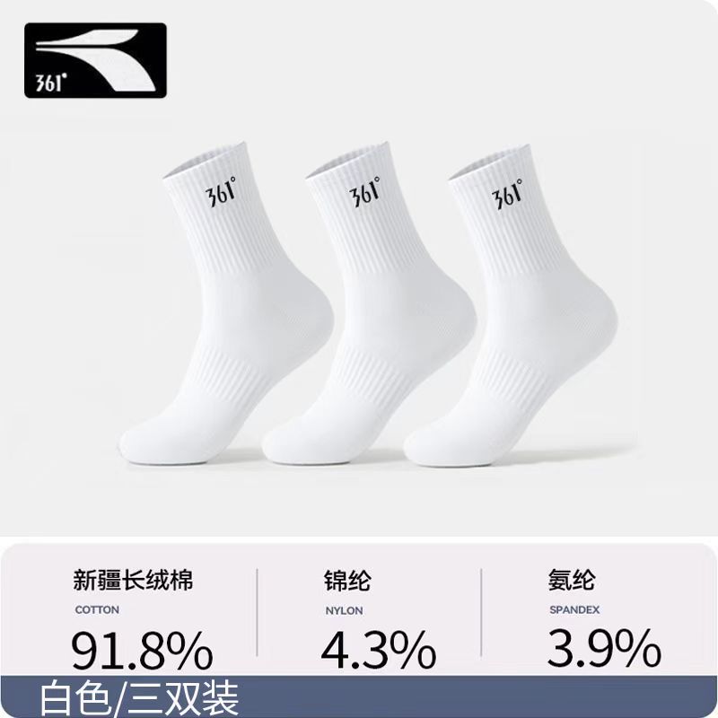 专柜59!咱们3双只要14.9!361运动中筒袜3双!