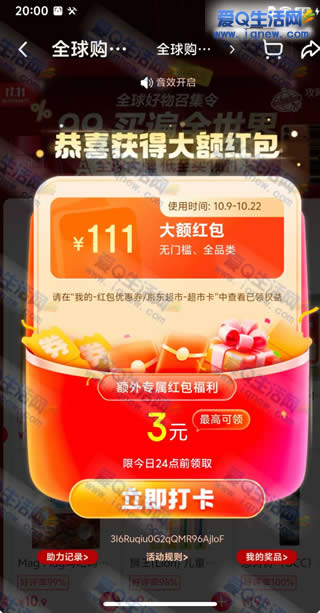 这个活动晚上20点整横开始最高面额