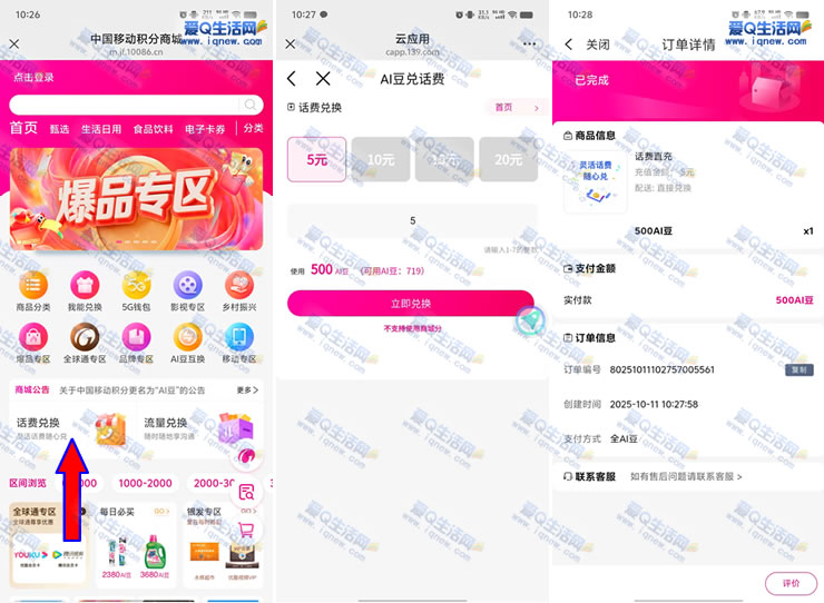 亲测5元话费秒到 移动网龄礼领AI豆兑换5-20元话费 ...