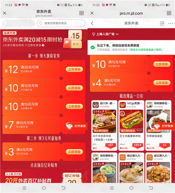 京东每天领15减10元外卖券、满5减4元外卖叠加券红包 ...