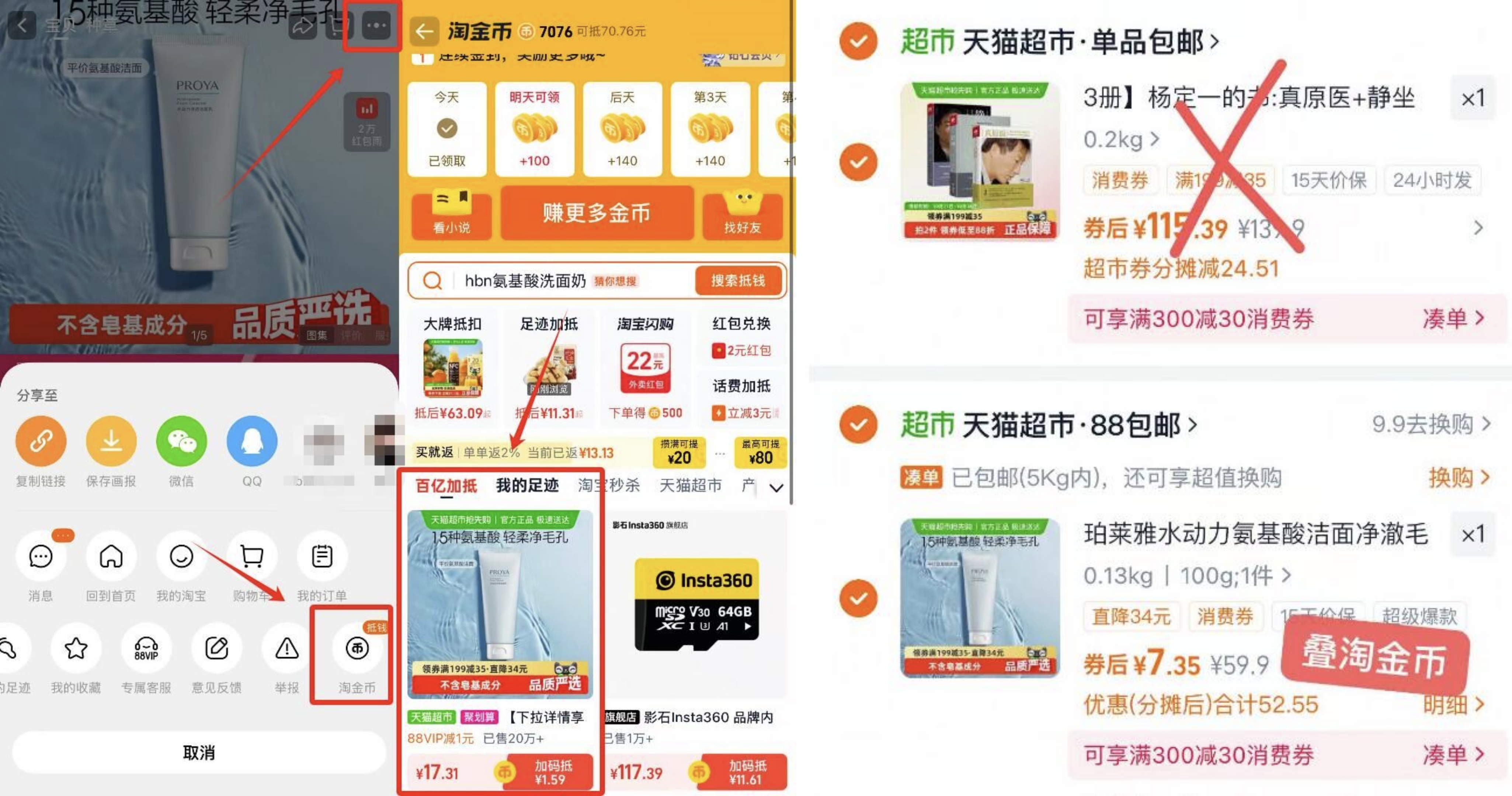 商品右上角3个点选淘金bi