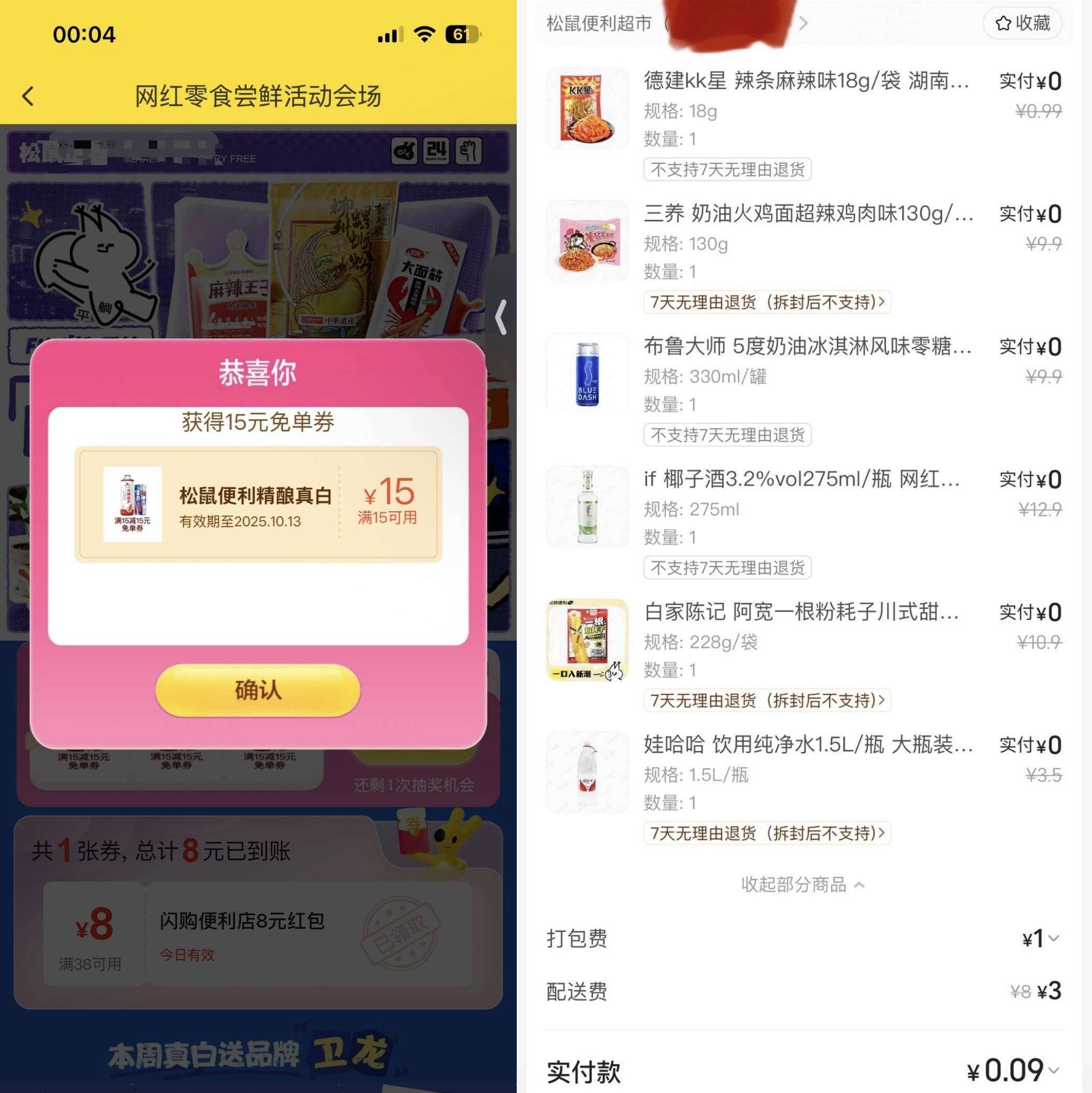 3️⃣美团APP搜:零食兔箪券