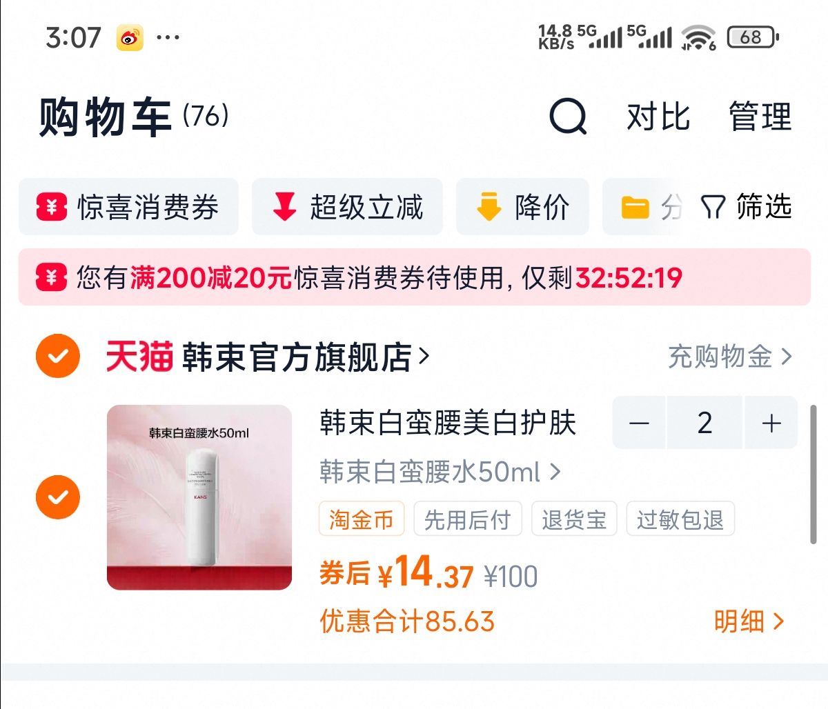 13💰‼Bug韩束白蛮腰王嘉尔代言
