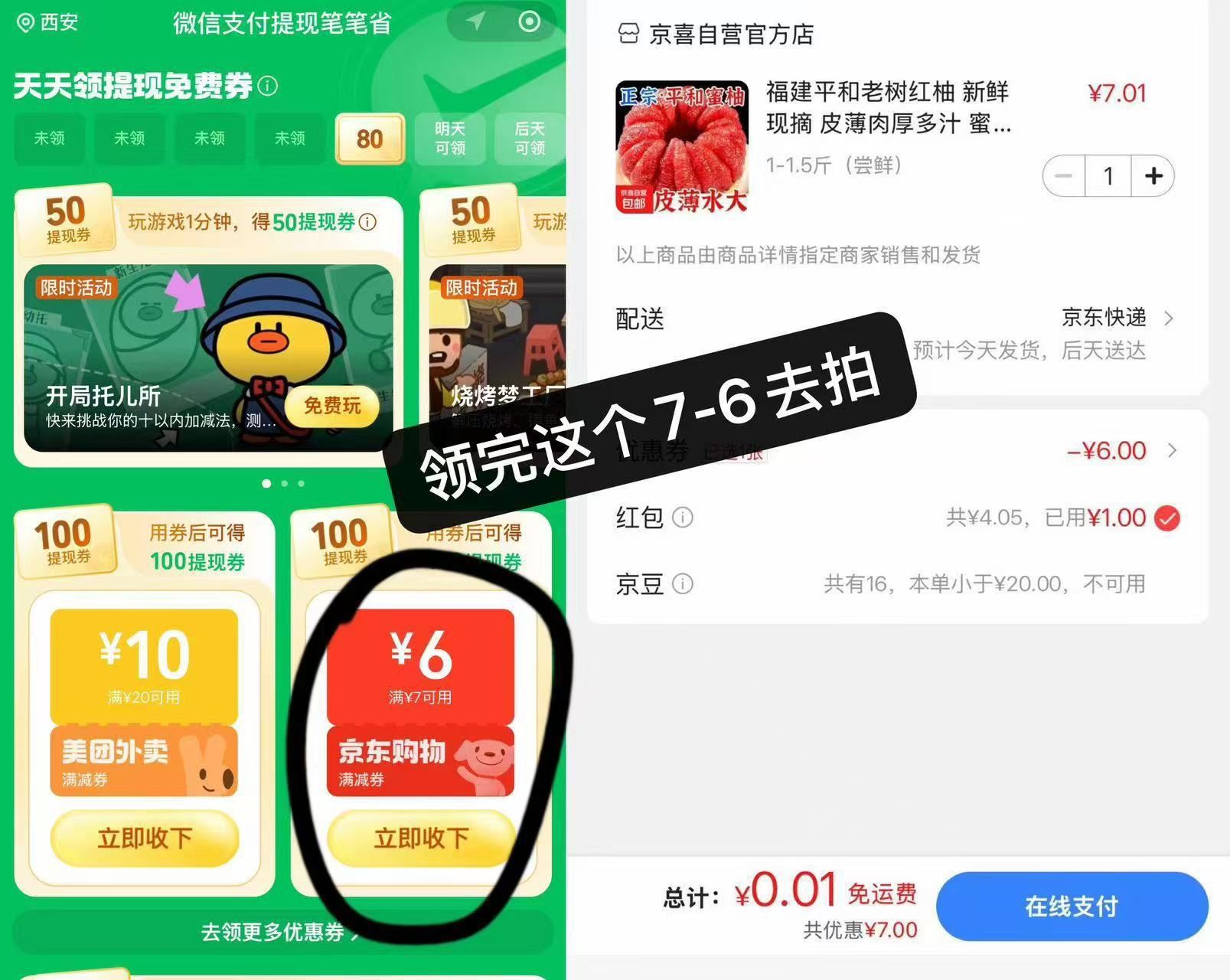 第二步:拍柚子到手0.01