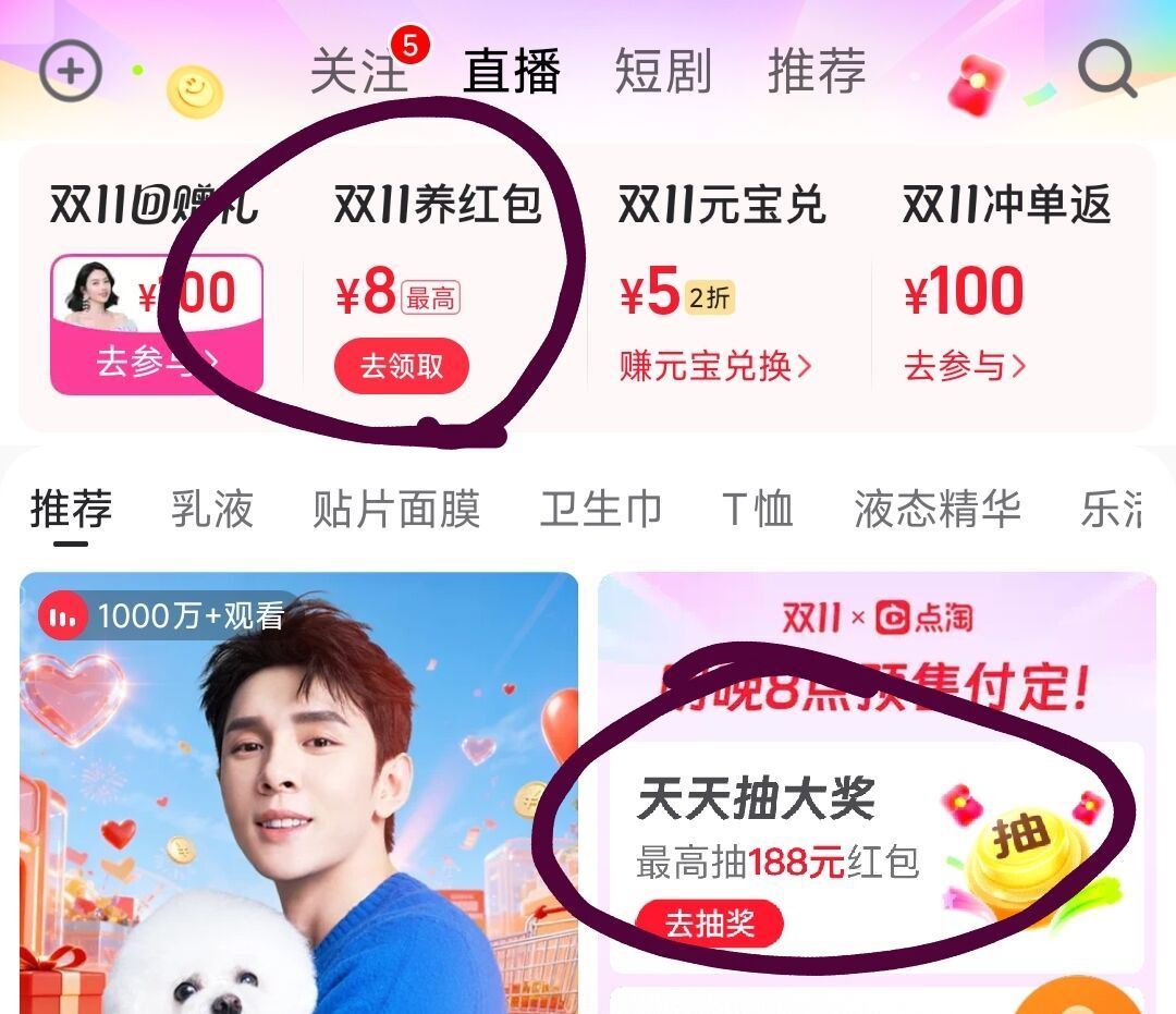 点淘app 首页有个双11养鸿包