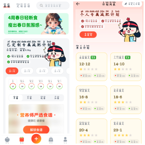 软件介绍:一款减肥食谱App,健康饮食,轻松瘦身! 提供轻断食食谱、饮食指导、健康资讯等,帮助你进行轻断食,达到瘦身、健康的目的。 界面简洁,作便捷,是你的健康瘦身好帮手!(手登录解锁VIP功能)